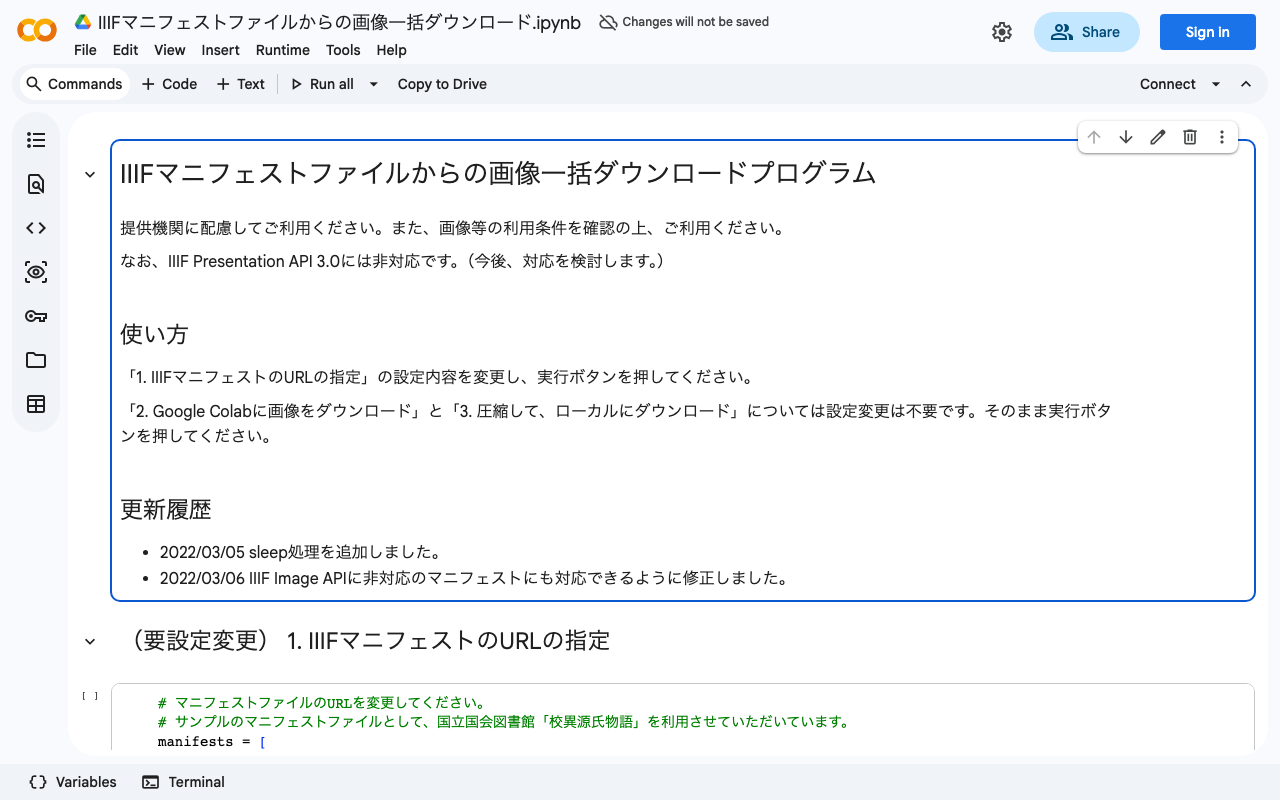 IIIFマニフェストファイルからの画像一括ダウンロードプログラムを作成しました。